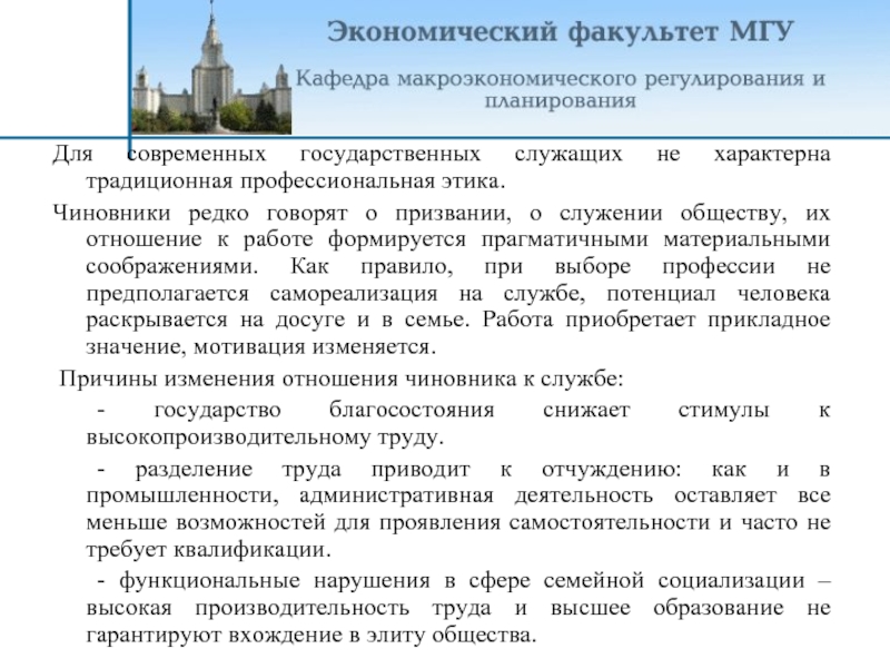 Для современных государственных служащих не характерна традиционная профессиональная этика.