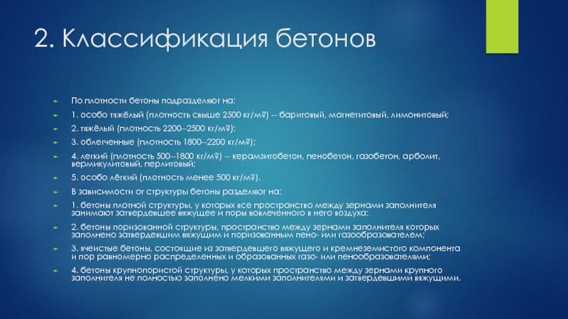2. Классификация бетонов