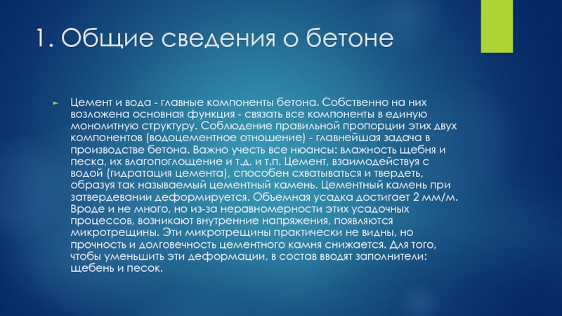 Слайд 51. Общие сведения о бетоне