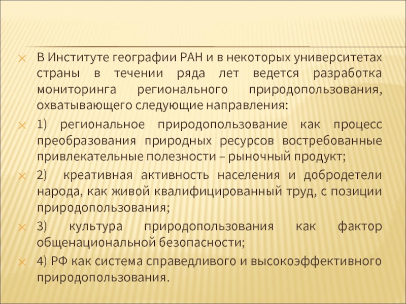 4) РФ как система справедливого и высокоэффективного природопользования.