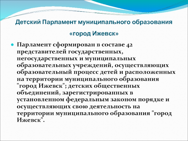 Детский Парламент муниципального образования «город Ижевск» создается при Главе муниципального образования