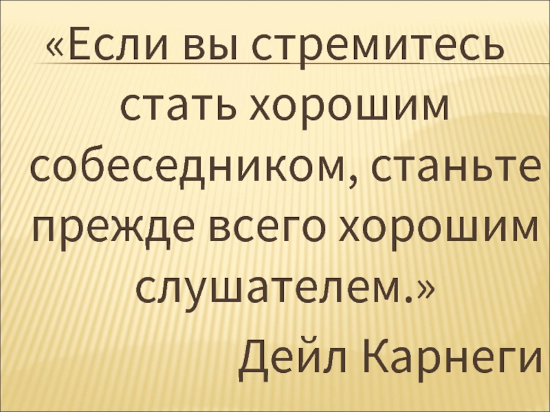 Слайд 18«Если вы стремитесь стать хорошим собеседником, станьте прежде всего хорошим слушателем.»