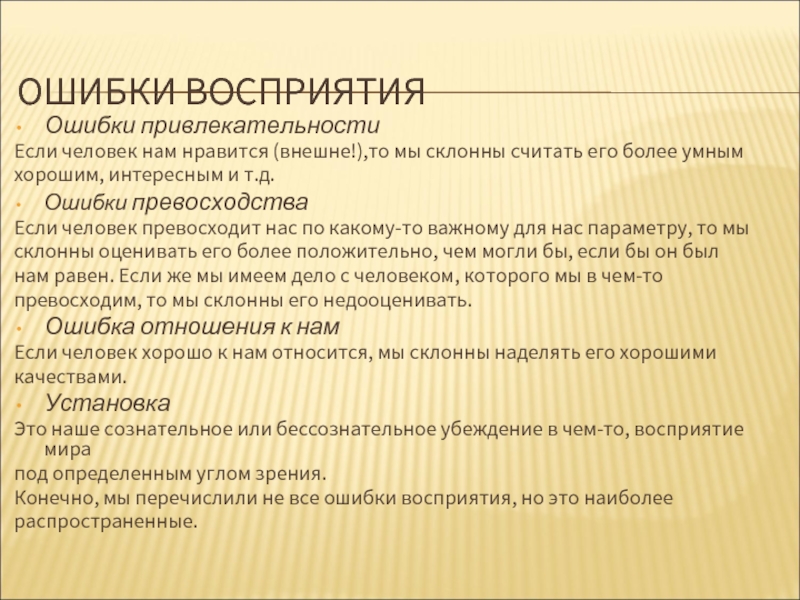 Конечно, мы перечислили не все ошибки восприятия, но это наиболее