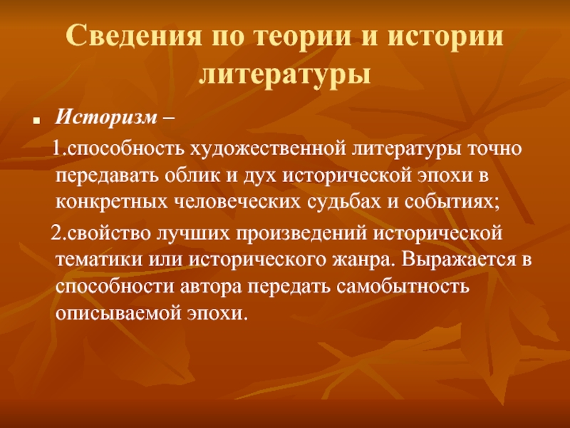 литературы точно передавать облик и дух исторической эпохи в конкретных человеческих судьбах и событиях;