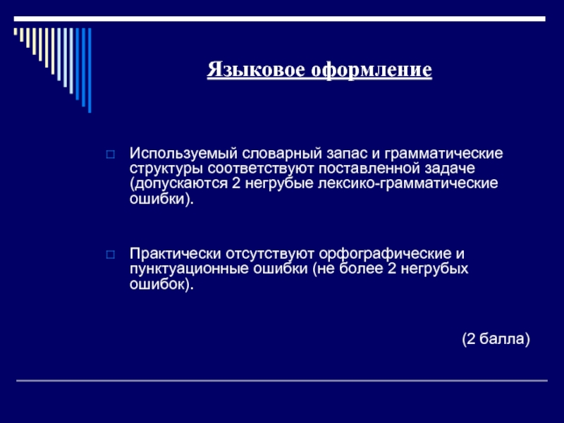 языковое оформление текста (max 2 балла)