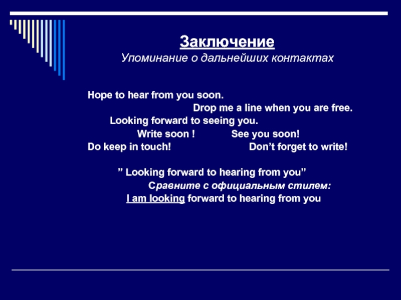 Завершающая фраза (неофициальный стиль, на отдельной строке),