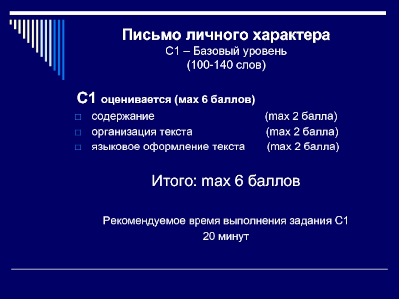 Слайд 3Структура и содержание раздела “Письмо” С1
