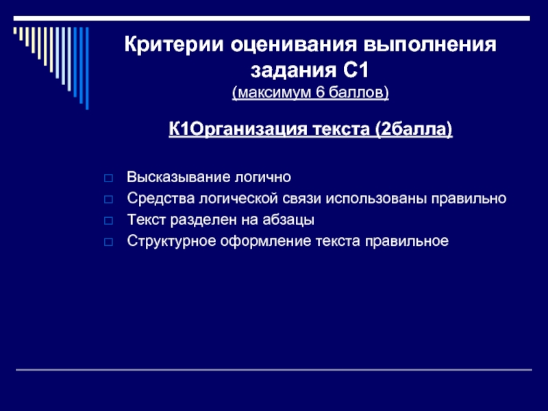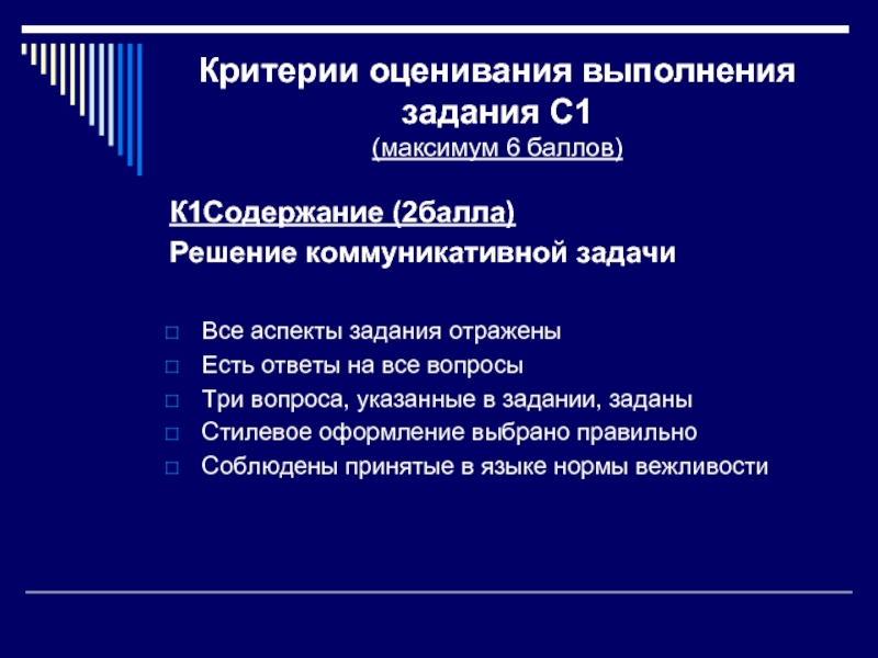 Слайд 6Критерии оценивания выполнения задания С1