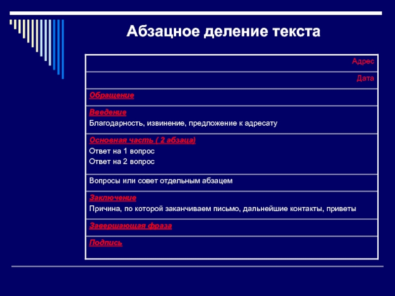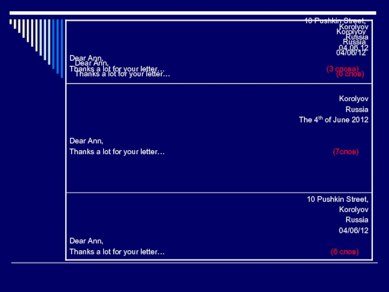 Слайд 12Личное письмо (структура)