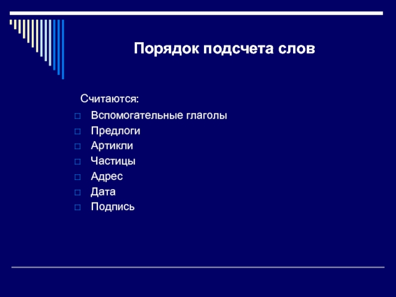 Слайд 8Порядок подсчета слов