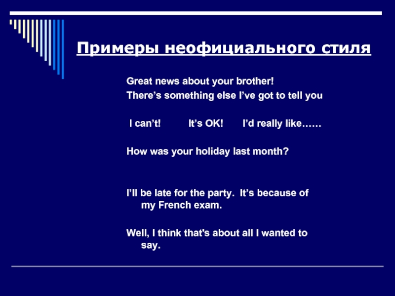 Сравните с официальным стилем: