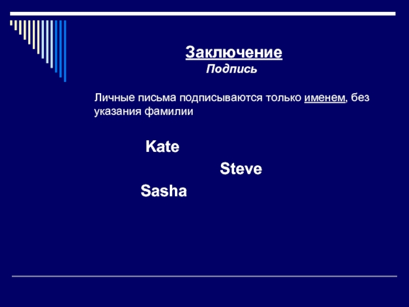 Личные письма подписываются только именем, без