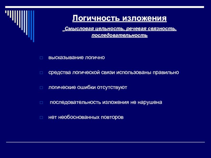 Логичность изложения (смысловая цельность, речевая связность, последовательность)