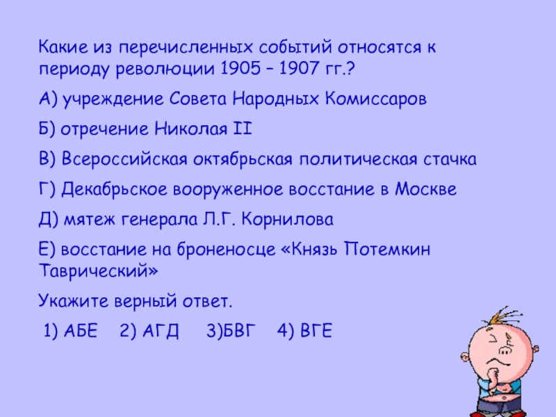 Слайд 17Какие из перечисленных событий относятся к периоду революции 1905 – 1907
