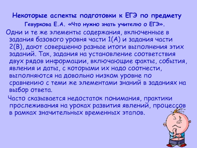 Некоторые аспекты подготовки к ЕГЭ по предмету