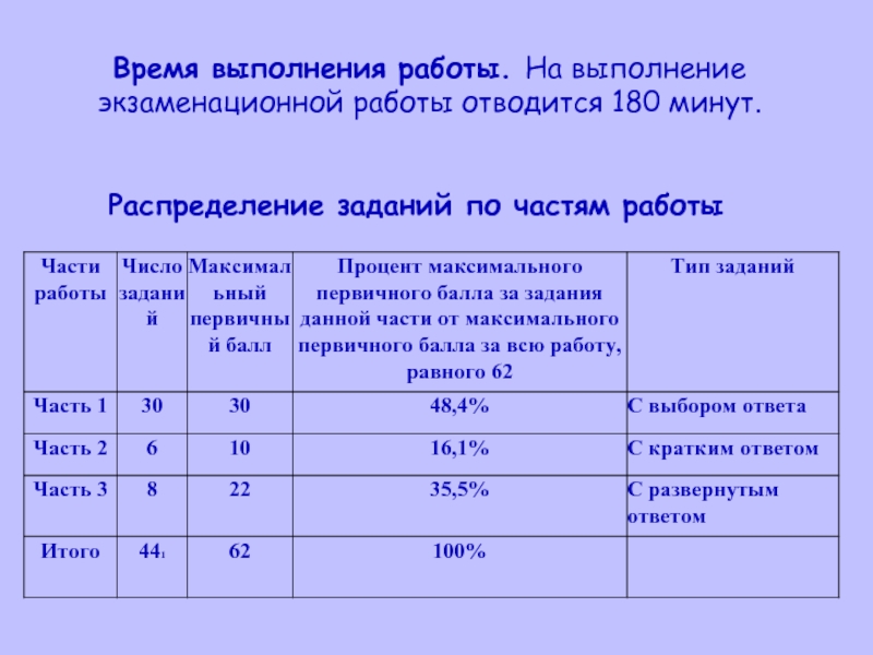 Слайд 61Распределение заданий экзаменационной работы по уровню сложности.