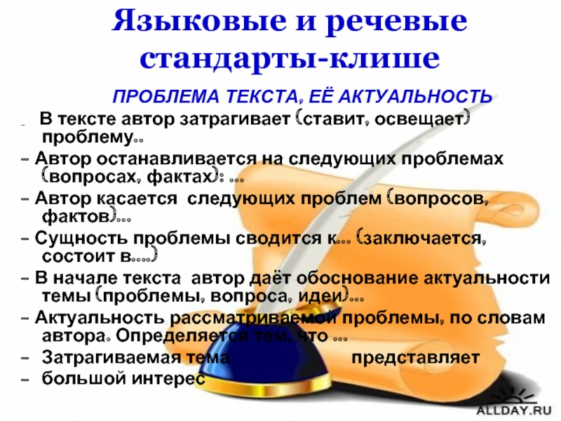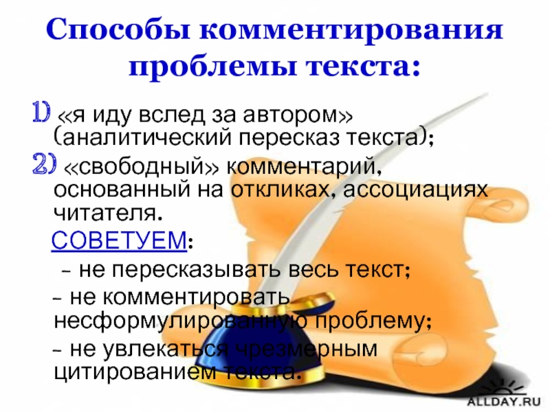 Слайд 14Формулировка и комментарий основной проблемы текста