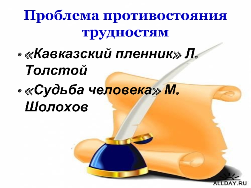 Итак, ПРОБЛЕМУ часто порождает жизненное противоречие: личность – общество, творец – искусство, человек - человек, человек - природа, человек - история.