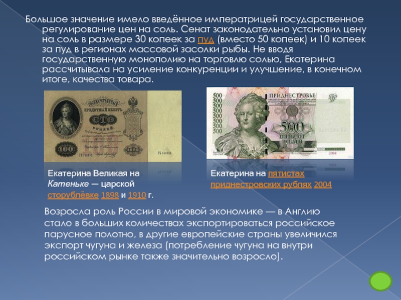 Екатерина Великая на Катеньке — царской сторублёвке 1898 и 1910 г.