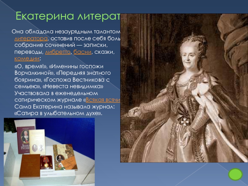 По ее собственному признанию, она не обладала творческим умом, но хорошо улавливала всякую дельную мысль и использовала ее в своих целях.