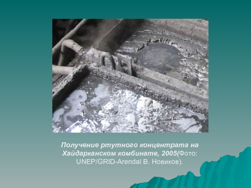 Слайд 17Получение ртутного концентрата на Хайдарканском комбинате, 2005(Фото: UNEP/GRID-Arendal В. Новиков).