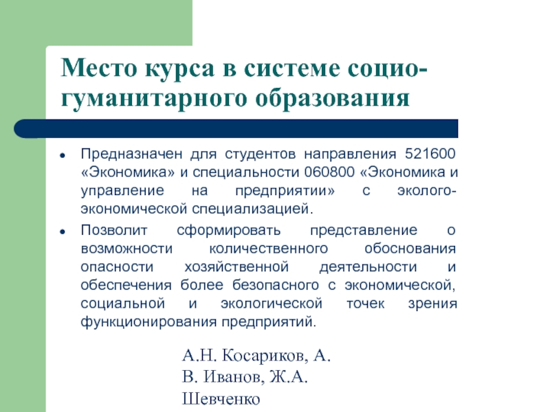 Слайд 3А.Н. Косариков, А.В. Иванов, Ж.А. Шевченко