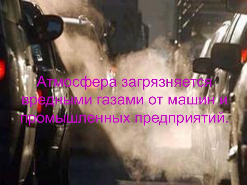 Слайд 8Атмосфера загрязняется вредными газами от машин и