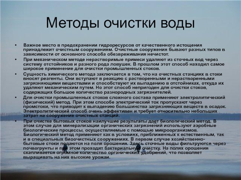 Слайд 9Методы очистки воды