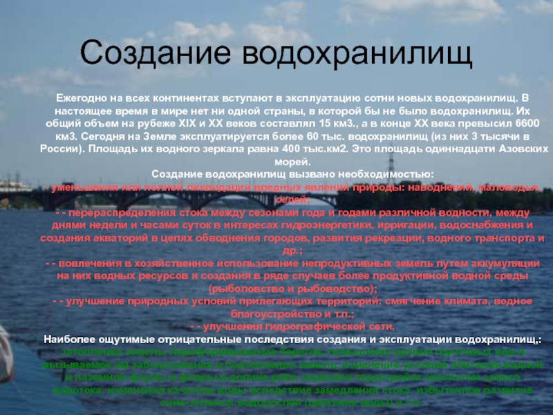 Слайд 3Создание водохранилищ