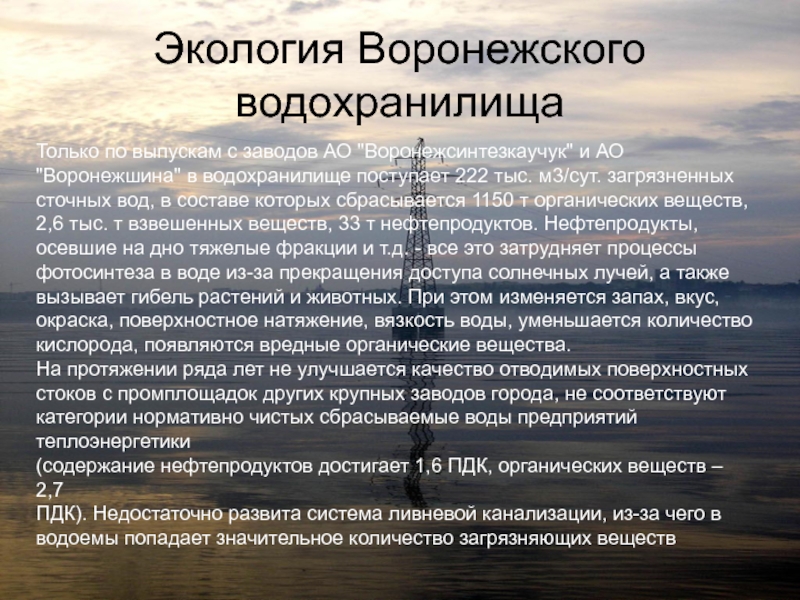 Слайд 1Экология Воронежского водохранилища.