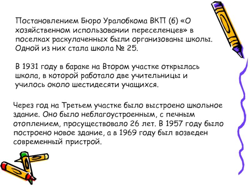 Через год на Третьем участке было выстроено школьное здание. Оно было неблагоустроенным, с печным отоплением, просуществовало 26 лет. В 1957 году было построено новое здание, а в 1969 году был возведен современный пристрой.