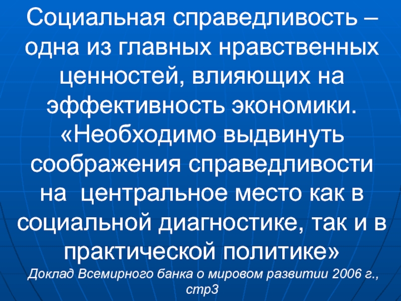 экономики. «Необходимо выдвинуть соображения справедливости на центральное место как в социальной диагностике, так и в практической политике»