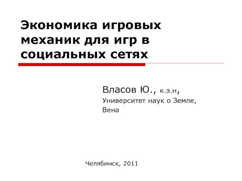 Слайд 1Экономика игровых механик для игр в социальных сетях