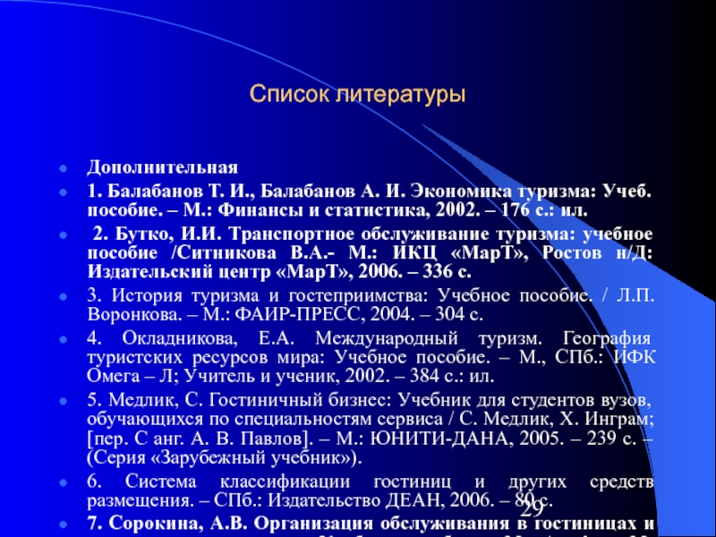1. Балабанов Т. И., Балабанов А. И. Экономика туризма: Учеб.