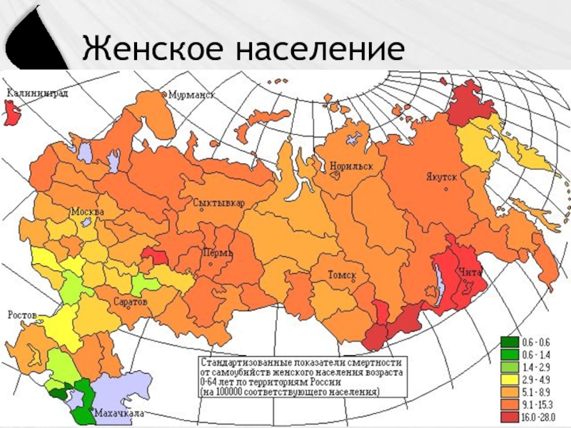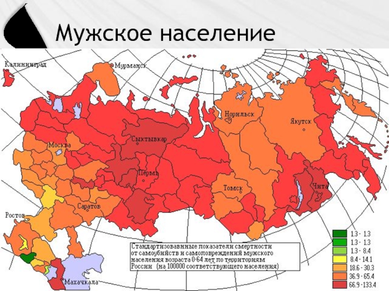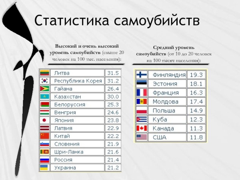 Средний уровень самоубийств (от 10 до 20 человек на 100 тысяч населения):
