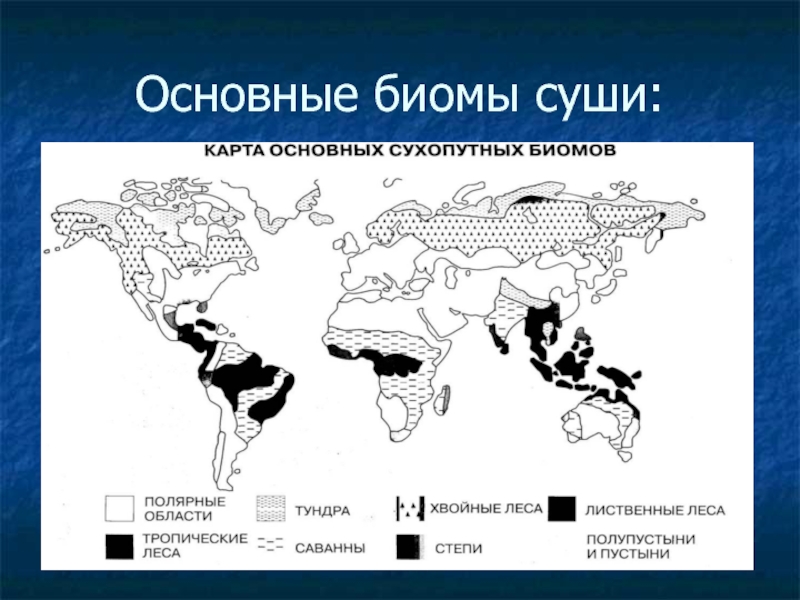 Слайд 7Основные типы природных экосистем и биом (по Ю.Одуму,1986)