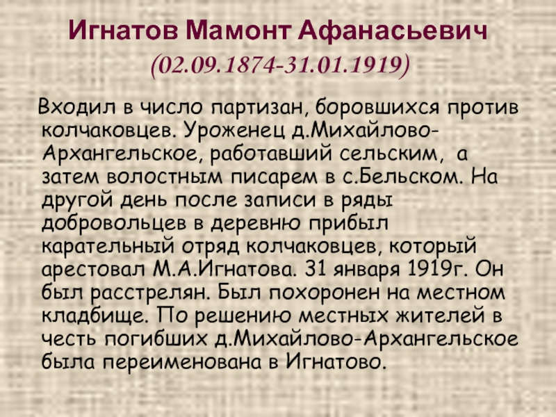 д. Игнатово, кладбище. Могила Игнатова В.Я., партизана