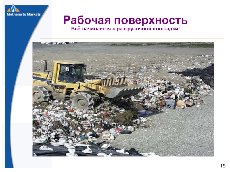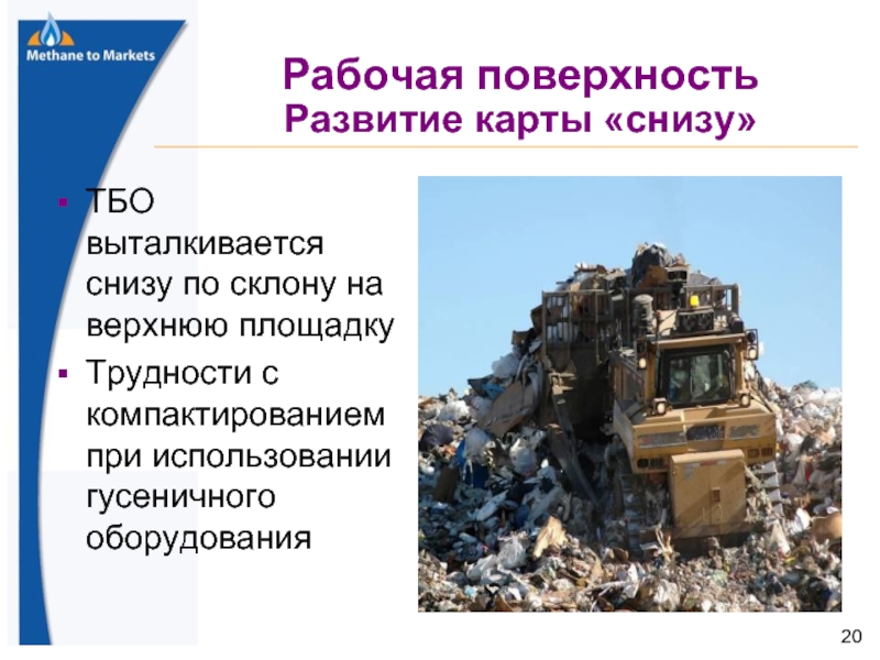 ТБО отталкивается бульдозером к рабочей поверхности, чем ближе, тем лучше!