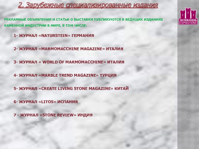 2- ЖУРНАЛ «MARMOMACCHINE MAGAZINE» ИТАЛИЯ