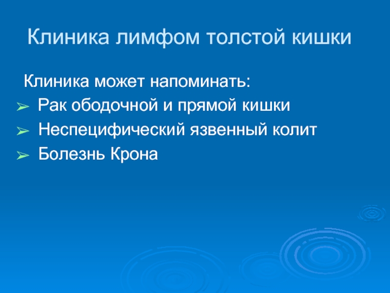 Слайд 23Вовлечение кишечника при неходжкинской лимфоме