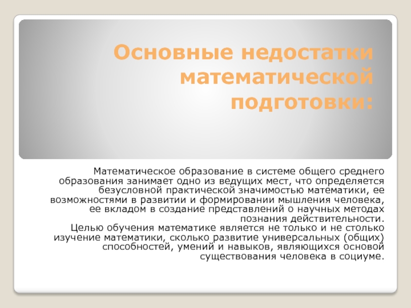 Слайд 1«Экзамен для девятиклассников: Основные недостатки математической подготовки учащихся и на