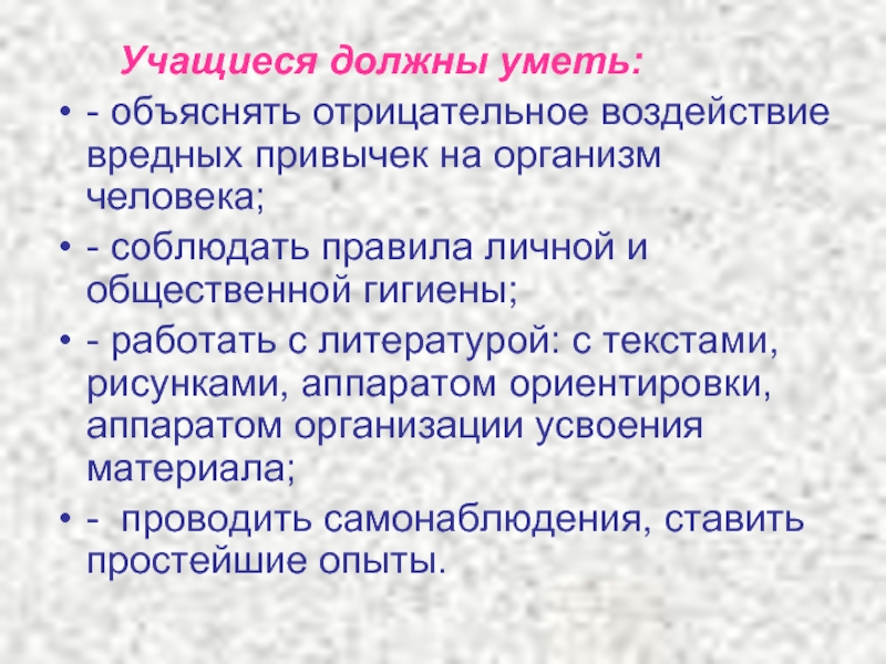 научить применять полученные гигиенические знания в жизни и практической деятельности;