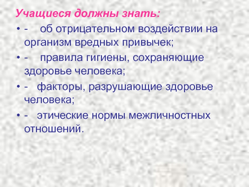 психическом и социальном здоровье человека, не рассматриваемые в школьной программе по биологии. Получение ими знаний в этой области позволит укрепить их здоровье, предупредить развитие вредных привычек в условиях неблагоприятного окружения, возродить спортивные и оздоровительные традиции как условие укрепления нравственных устоев семьи.