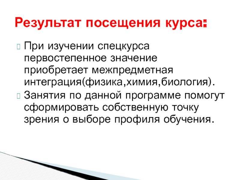 Результат посещения курса: