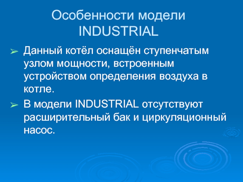 В модели INDUSTRIAL отсутствуют расширительный бак и циркуляционный насос.