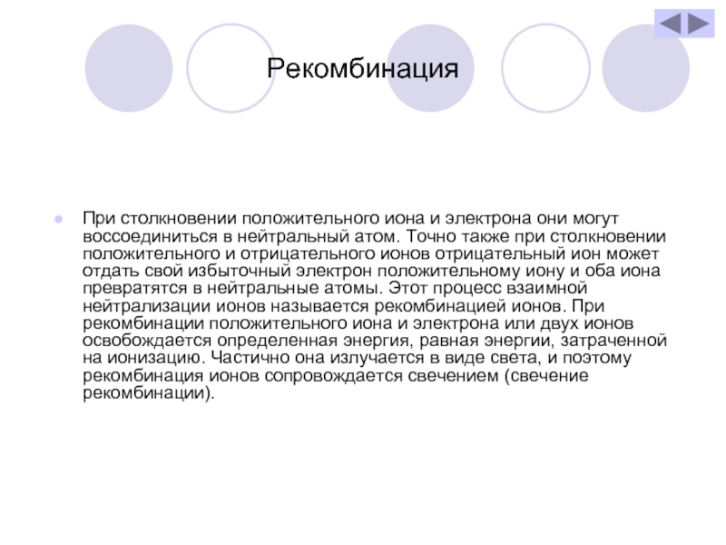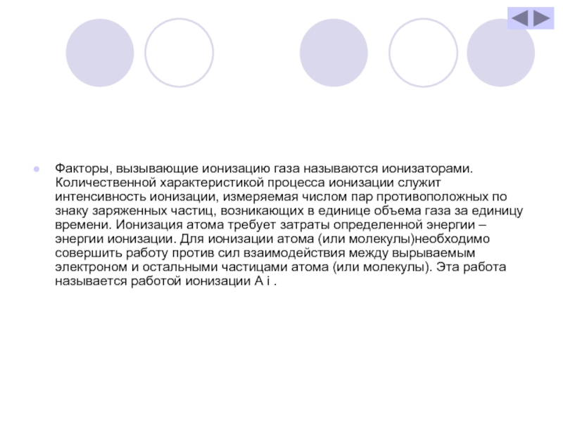 Нагревание – не единственный способ превращения газа в проводник. Вместо пламени можно использовать ультрафиолетовое или рентгеновское излучение, а также поток альфа-частиц или электронов. Опытами установлено, что действие любой из этих причин приводит к ионизации молекул газа. При этом от некоторых молекул отрывается один (или несколько) электронов, в результате чего молекула превращается в положительный ион. Под воздействием электрического поля, существующего между дисками, образовавшиеся ионы и электроны начинают двигаться, создавая между дисками электрический ток. Прохождение тока через газы называют газовым разрядом.
