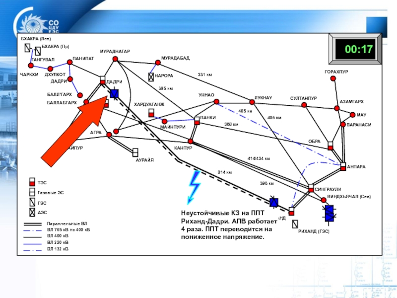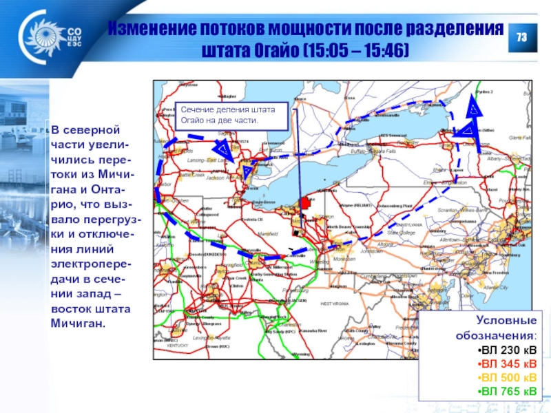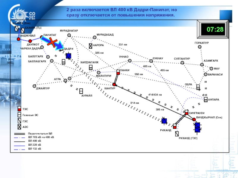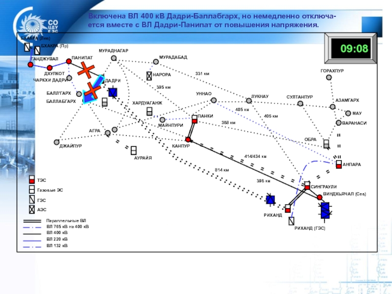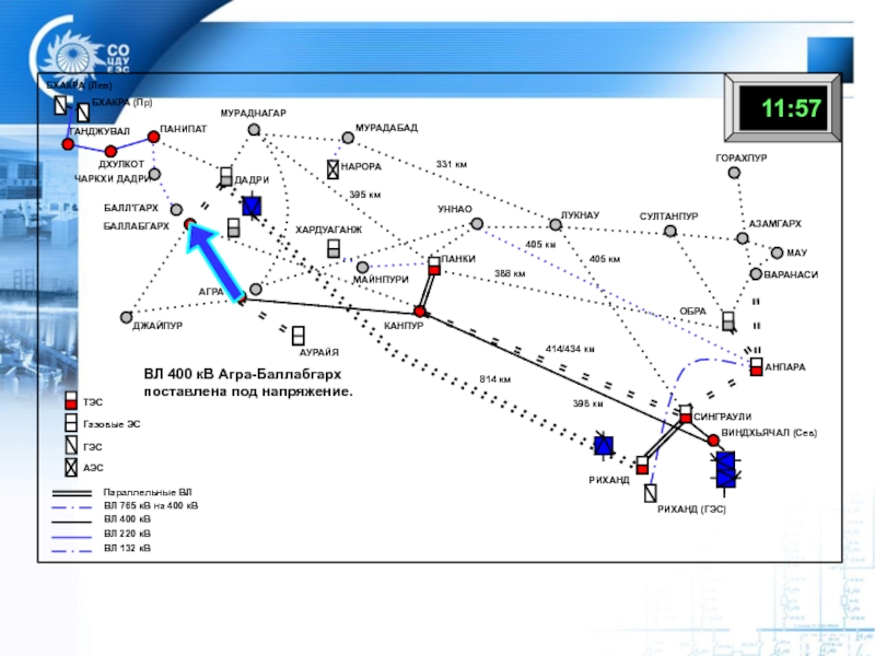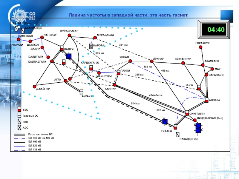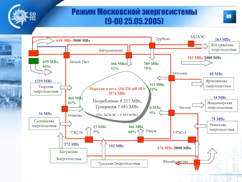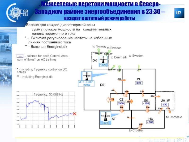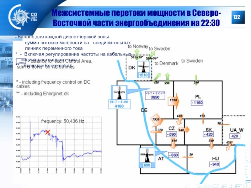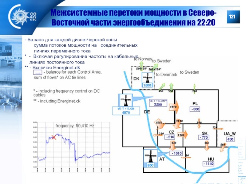 Слайд 126Межсетевые перетоки мощности в Северо-Восточной части энергообъединения в 22:50 - сразу