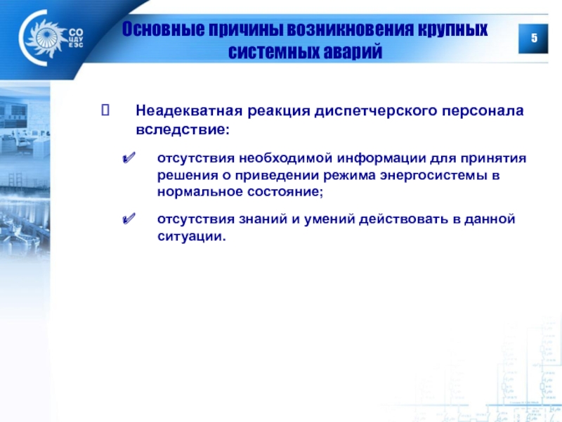 Организационно-технические мероприятия в системе оперативно-диспетчерского управления, направленные на предотвращение системных аварий.