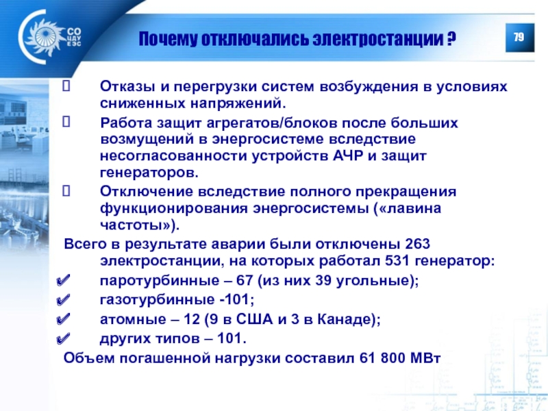 возникновение значительного (нерасчетного) дефицита активной, реактивной мощности из-за аварий на крупных электростанциях…
