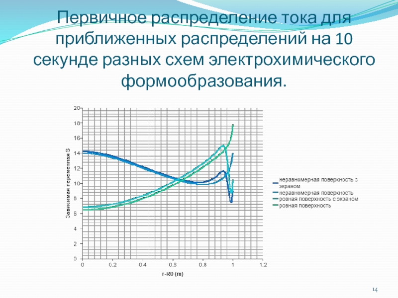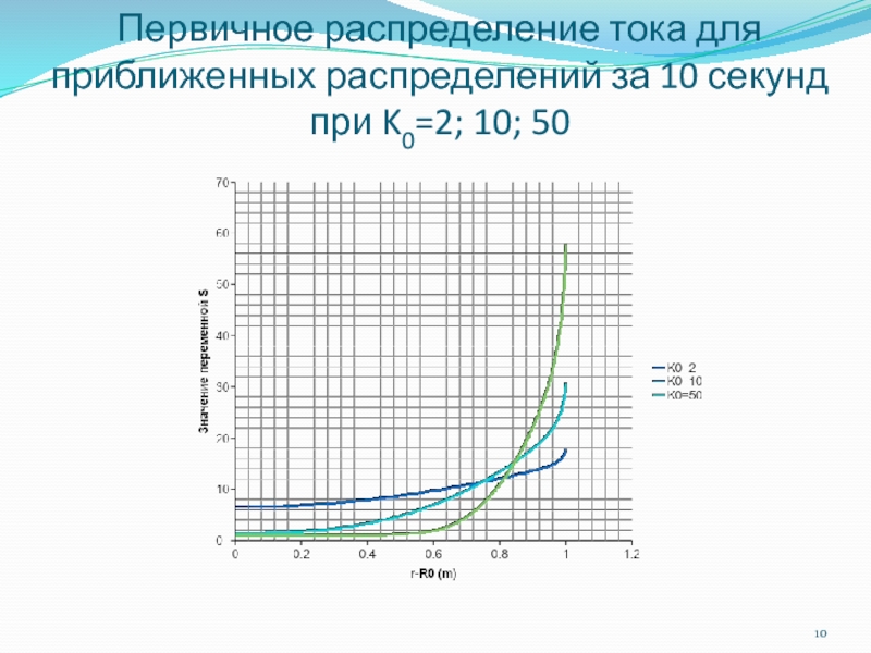 Слайд 10Первичное распределение тока для приближенных распределений за 10 секунд при K0=2;